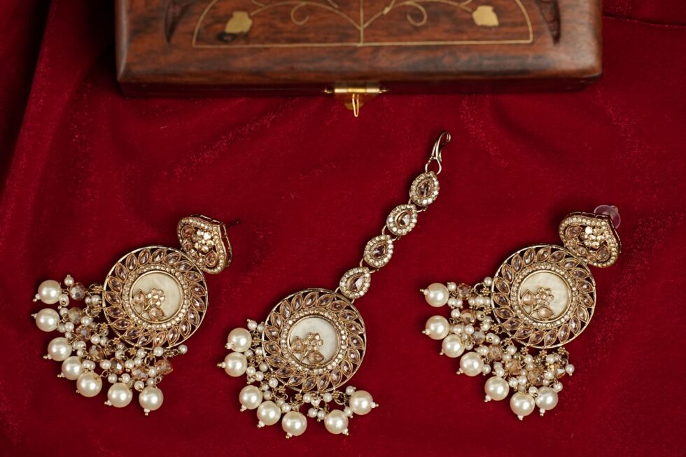 Sales Package: 1 Pair of Earrings & Maang Tikka set